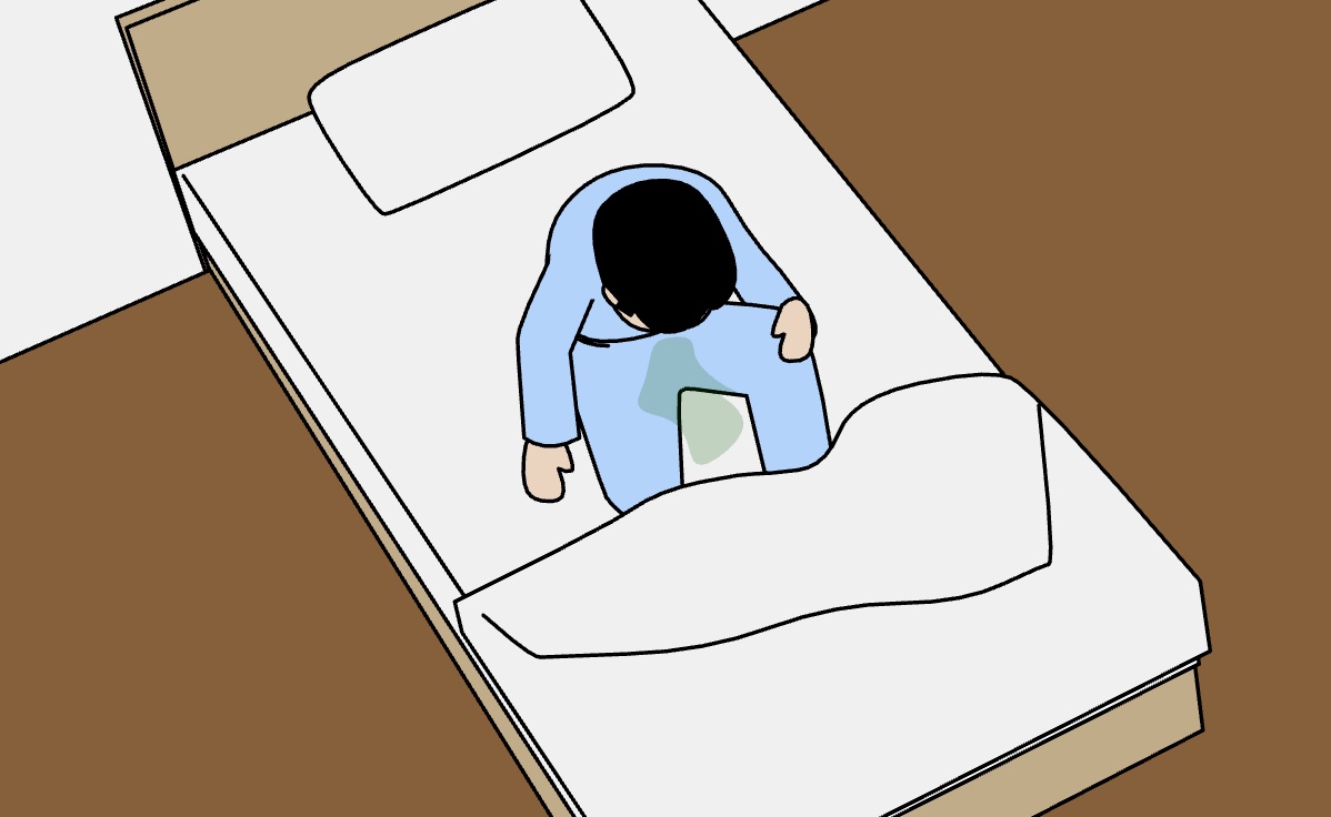 이불을 덮어주고 남자의 얼굴을 보면 곧 놀라서 잠에서 깨어나 좌절합니다.