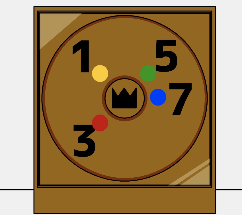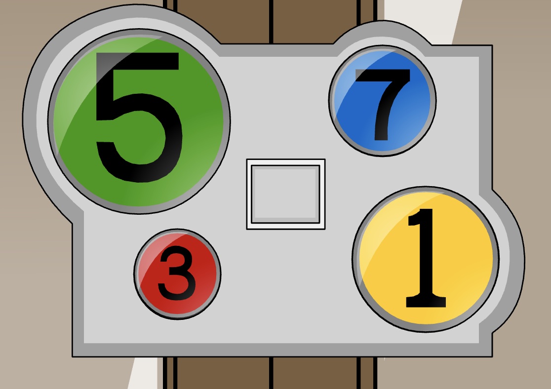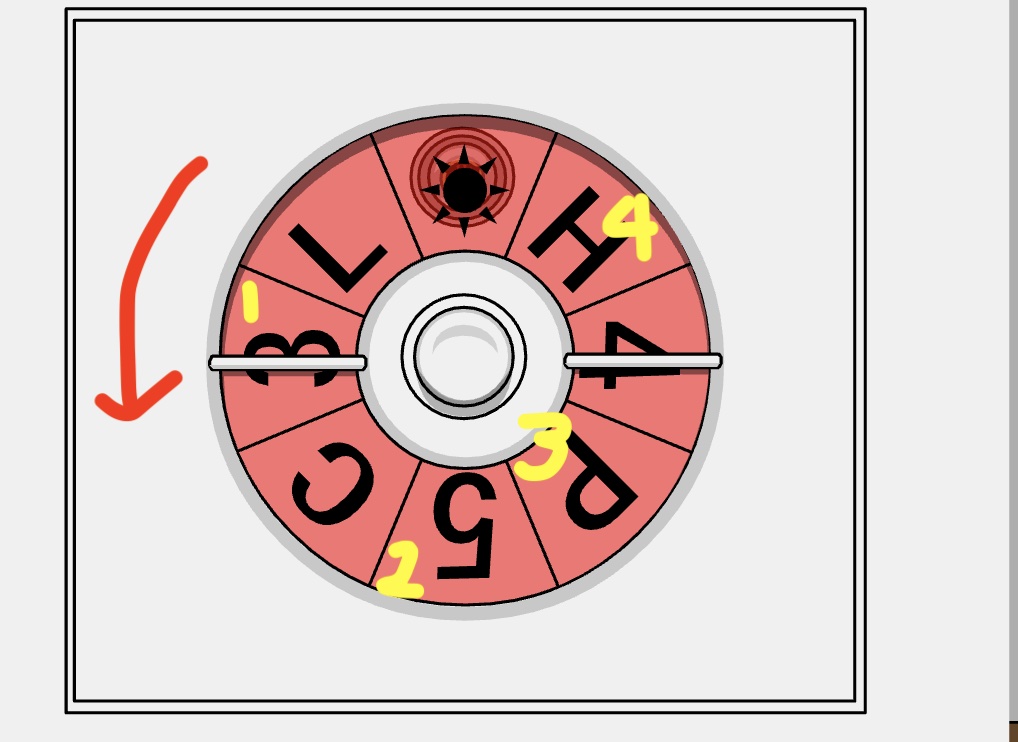 가면 벽면에 위와 같은 힌트가 있고 회전하고 중앙을 누르는 방식의 퀴즈가 나타납니다.