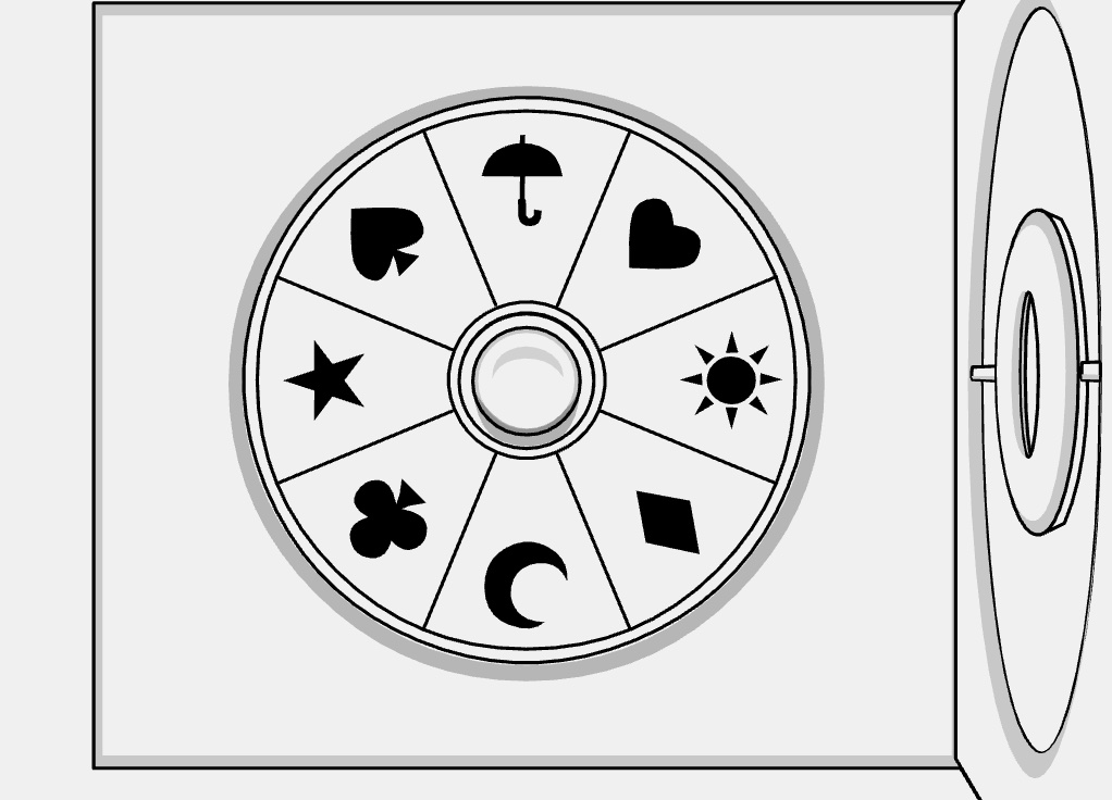 태양 무늬를 기준으로 시계 반대방향, 빛이 통과하는 기호를 비밀번호로 입력합니다.