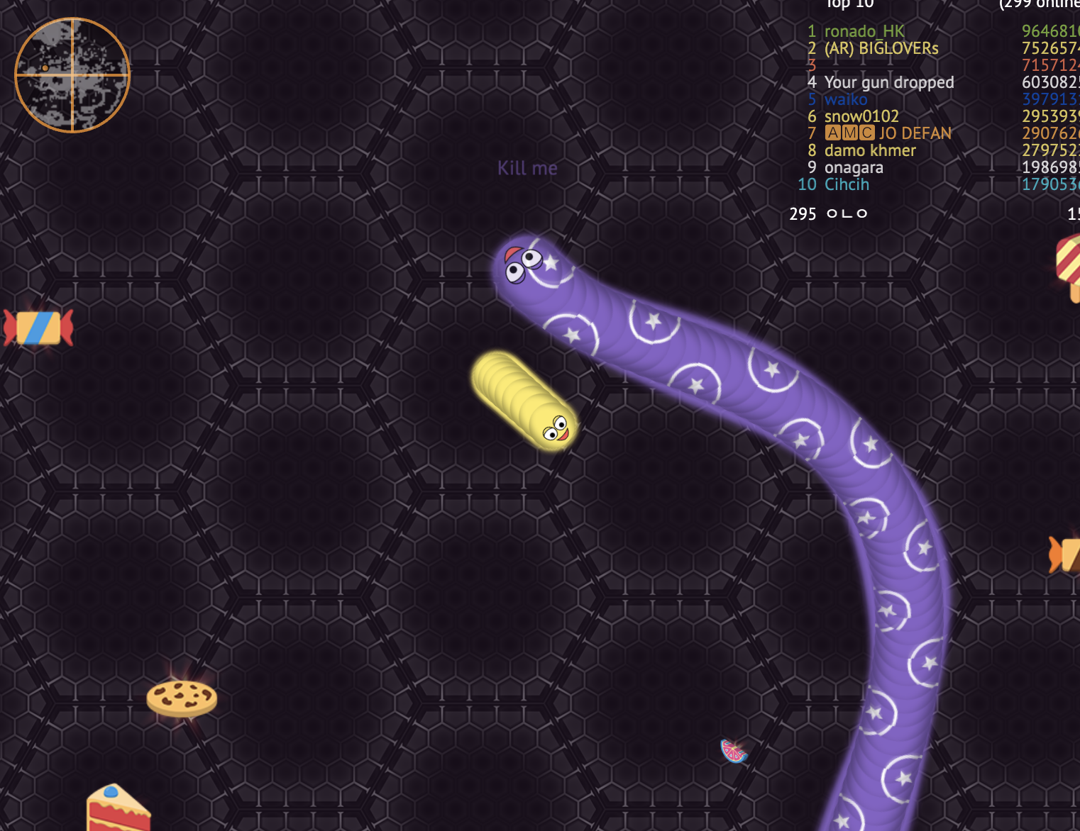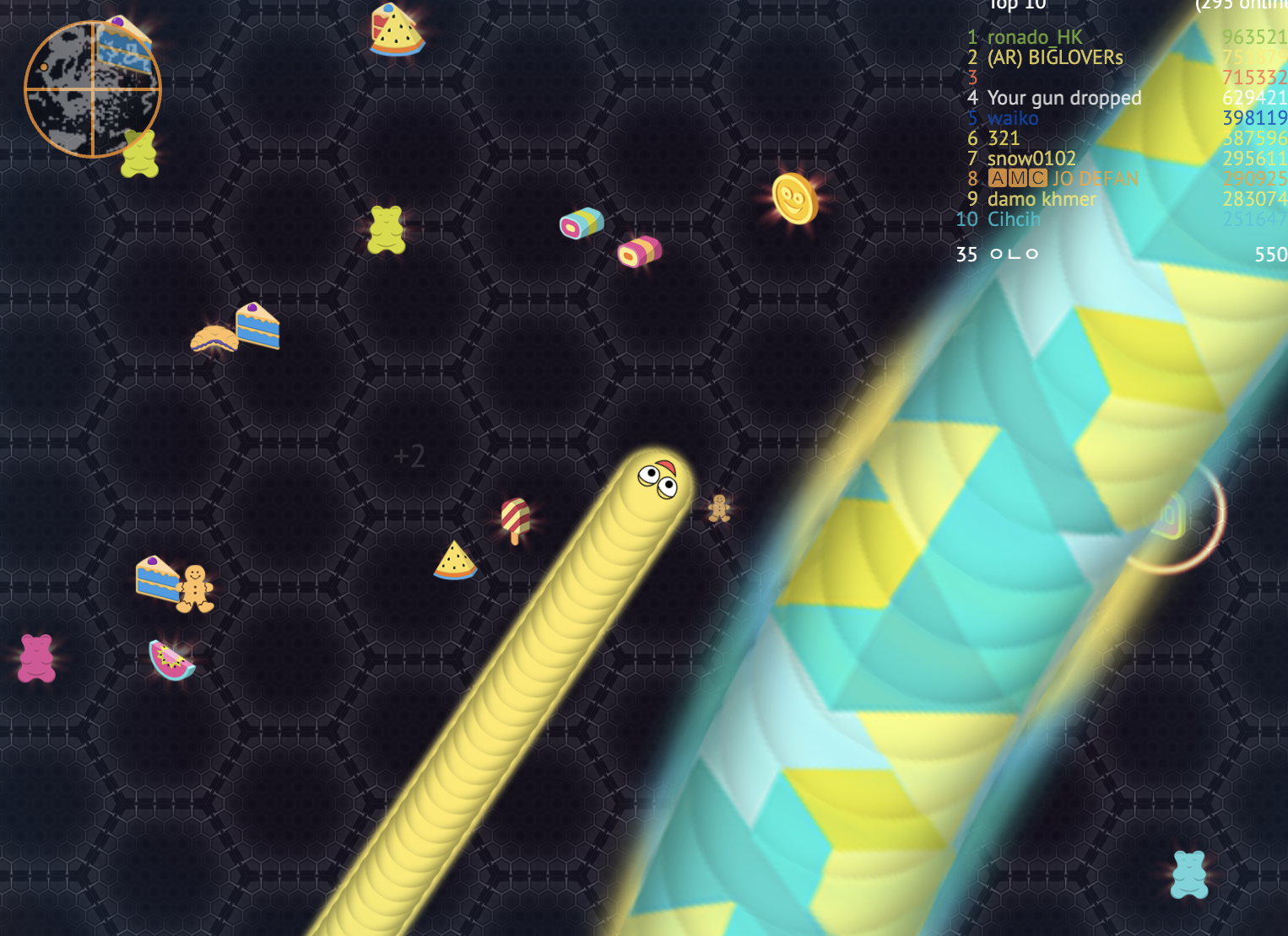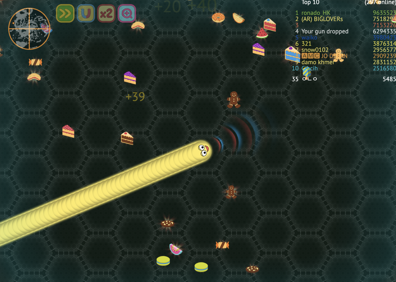 여러 아이템을 먹으면서 지렁이의 몸이 점점 거대해집니다.